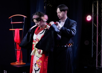 Но главное – это не просто рассказ! Кульминацией вечера стало настоящее шоу – облачение в подлинное японское кимоно прямо на сцене. Волшебство традиционного наряда, его крой, узоры и история – все это ожило на глазах изумленной публики.