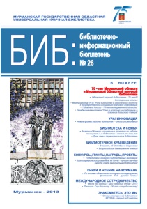 БИБ: библиотечно-информационный бюллетень N 26 / Мурм. гос. обл. универс. науч. б-ка ; [сост. Л. П. Петриченко ; редкол.: С.А. Медникова и др.]. – Мурманск : МГОУНБ, 2013. – 224 с. : ил., портр.