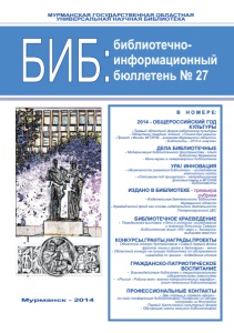 БИБ: библиотечно-информационный бюллетень N 27 / Мурм. гос. обл. универс. науч. б-ка ; [сост. А. И. Грешникова ; редкол.: С.А. Медникова и др.]. – Мурманск : МГОУНБ, 2014. – 213 с. : ил., портр.