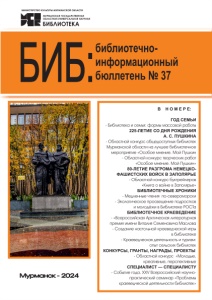БИБ: библиотечно-информационный бюллетень. № 37 / Министерство культуры Мурманской области, Мурманская государственная областная универсальная научная библиотека ; составитель С. В. Иванова ; редколлегия: Ю. В. Сосипатрова [и др.]. — Мурманск : МГОУНБ, 2024. — 152 с. : ил., портр.