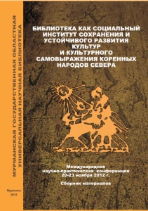 Библиотека как социальный институт сохранения и устойчивого развития культур и культурного самовыражения коренных народов Севера ("Library as a social institution for conservation and sustainable development of cultures and cultural expressions of the North indigenous peoples"): междунар. науч.-практ. конф., 20-23 ноября 2012 г. Мурманск: сб. материалов/ сост. Михайлова Е.Р., Иванова С.В. : редкол.: Синева Е.В. и др. – Мурманск: МГОУНБ, 2013. – 226 с.