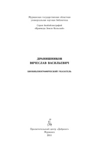 Мурманская государственная областная универсальная научная библиотека Серия биобиблиографий «Краеведы Земли Кольской» ДРАНИШНИКОВ ВЯЧЕСЛАВ ВАСИЛЬЕВИЧ БИОБИБЛИОГРАФИЧЕСКИЙ УКАЗАТЕЛЬ Просветительский центр «Доброхот» Мурманск 2011