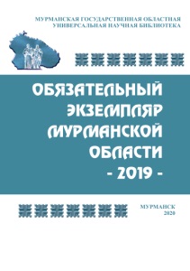 Обязательный экземпляр Мурманской области –2019 : библиографический указатель / Мурм. гос. обл. универс. науч. б-ка ; [сост. Фролова О. Н., Дячок С. А. ; редкол. : Вовк О. С. и др.]. – Мурманск, 2020. – 133 c.