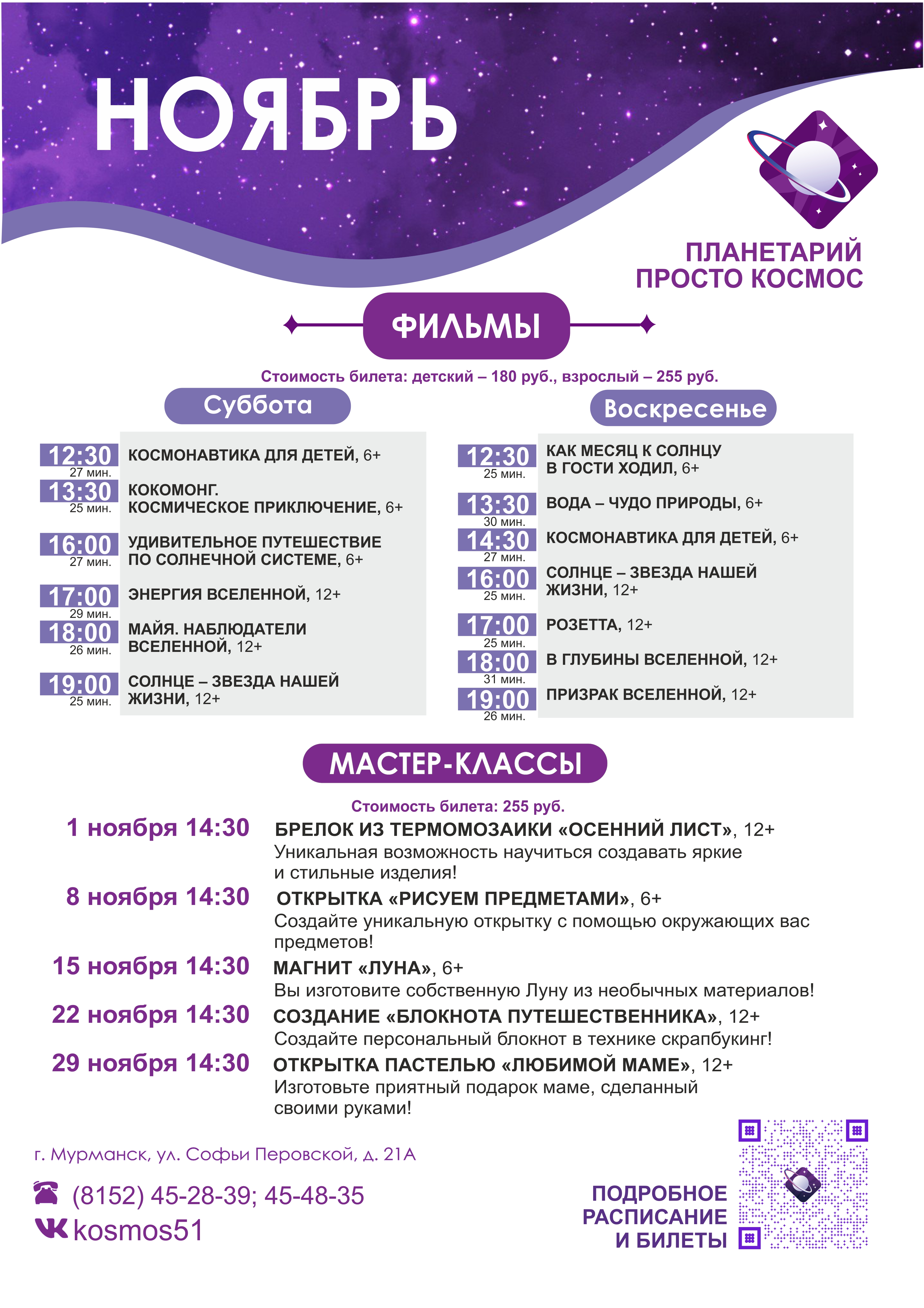 Ознакомьтесь с репертуаром Планетария и Правилами посещения Планетария.