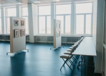 Зал-трансформер находится на 4 этаже библиотеки (центральный зал).